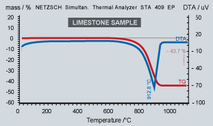The TG-DTA analysis for limestone sample showed an endothermic peak at 912°C with a total weight loss of 43.7% due to the decomposition of CaCO3 to CaO and CO2.