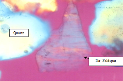 Figure 4 : Na-Feldspar and quartz image under polarizing microscope (transmitted light)