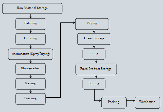 Figure 1: Flow chart of Production Process of Vitrified Tile. After [1] Biffi pg.28
