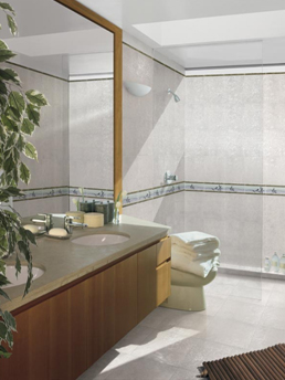 It has been a traditional application for ceramic tiles as floor and wall coverings in the kitchen (floor, wall, counter top) and bathroom (wash basin, tops, bath surrounds, showers). Please see Figure 2. With advances in ceramic technology, ceramic tiles are highly adaptable. They feature strongly in all spaces of the private residence including bedroom, living room, dining hall, stairs, driveway and car porch. The enormous range of decorations, colours and accessories add sophisticated details and create exquisite decorative surface to the tiled surface.